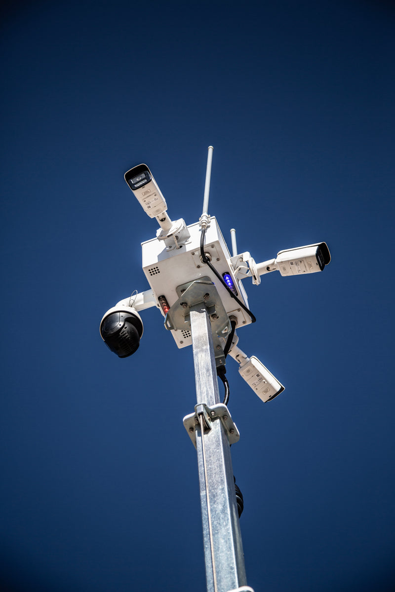 Elevates cameras for wide-area coverage and maximum site visibility.